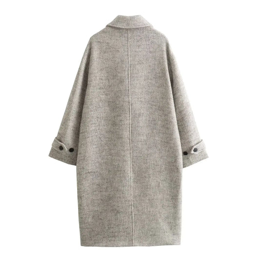 Winter Women Casual Solid Coat Single Breasted Loose Fit Coat Herringbone Twill Long Women Demi-season Jacket