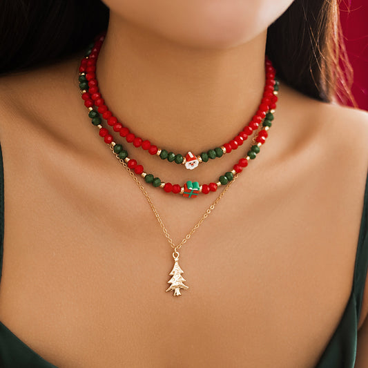 Christmas beaded women's necklace, Christmas snowman gift, imitation crystal choker