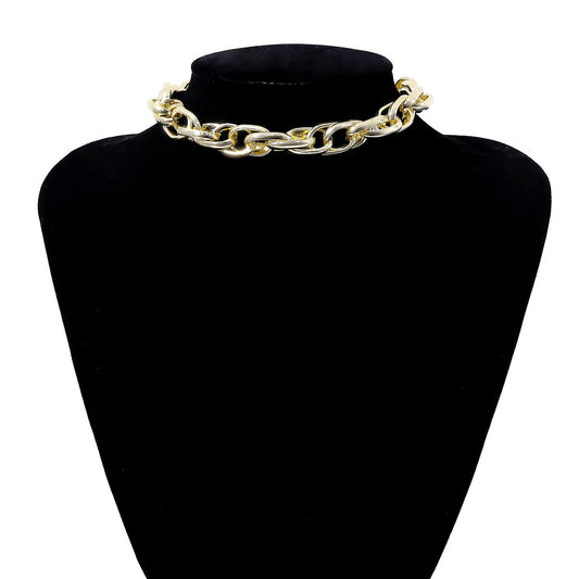 Geometric thick chain necklace with punk asymmetrical contrasting buckle necklace for women