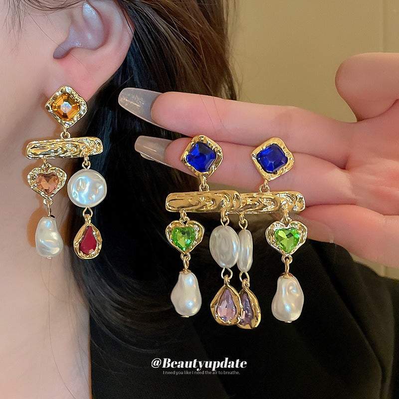 Asymmetric pearls medieval earrings palace style retro tassel earrings niche