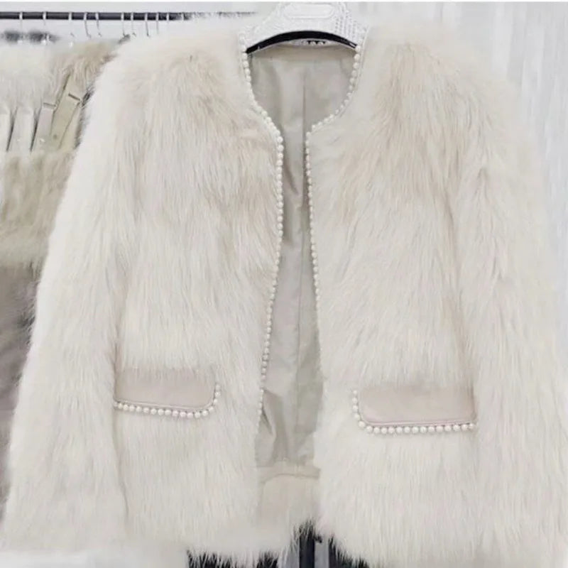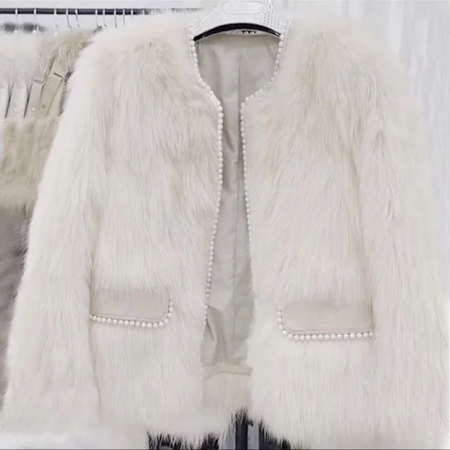 Autumn Winter Thicken Faux Fur Coat High Quality Pearl Fur Coat Slim Elegant Faux Fur Cardigan Women Warm Luxury Outerwear Coat