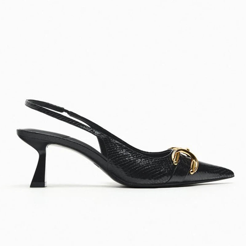 Black Pumps Elegant Woman High Heels Metallic Leather High-heeled Stilito Heel Pointed Toe Slingback Summer Lady Shoes