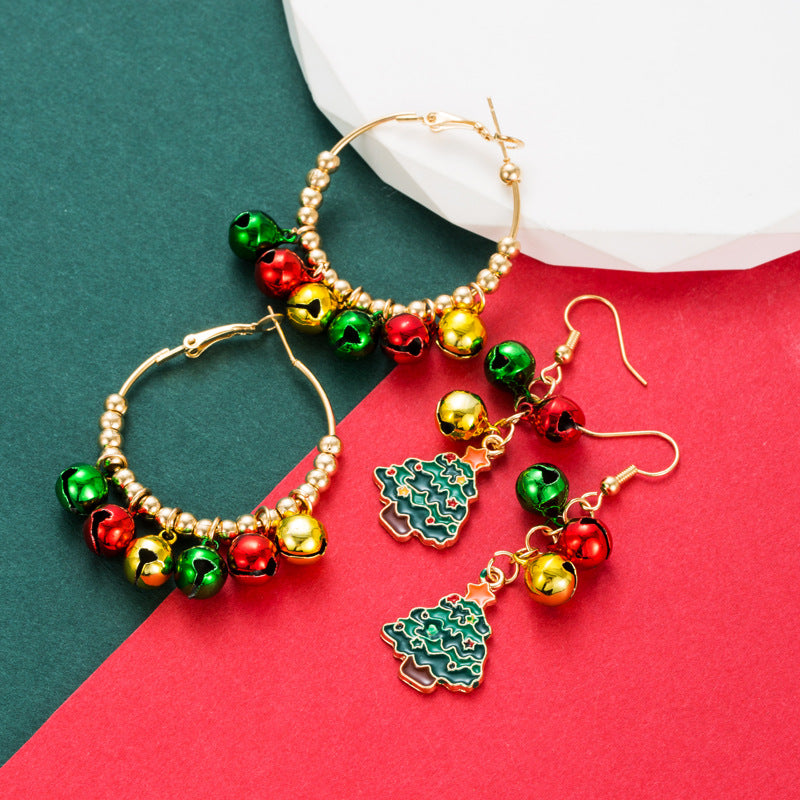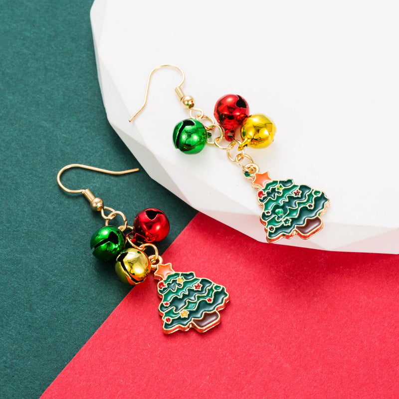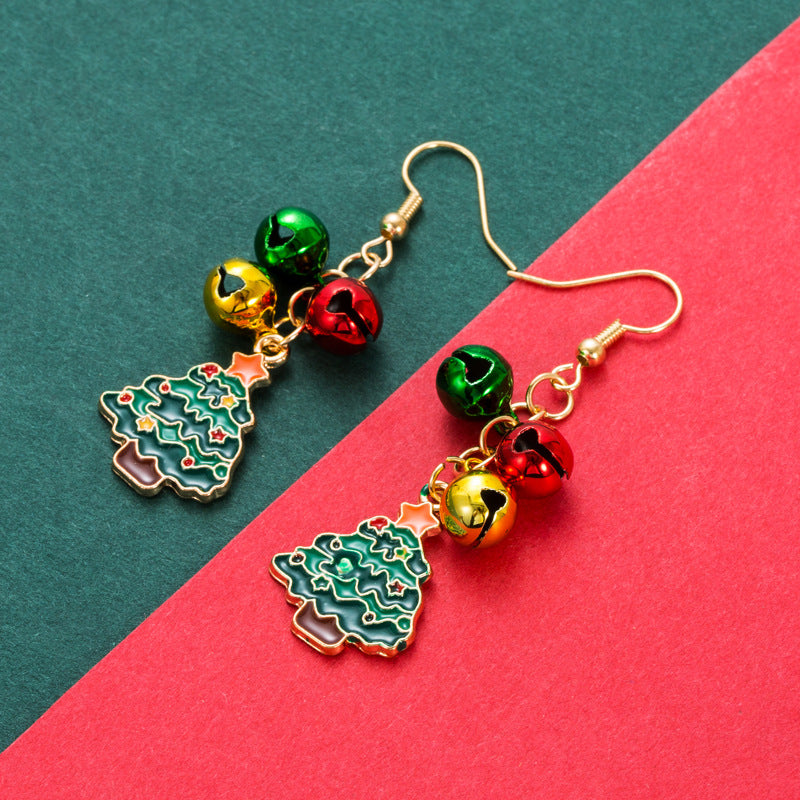 Christmas Series Fashion Design Long Christmas Tree Earrings Cute Bells Hundred Match Ear Hook Earrings