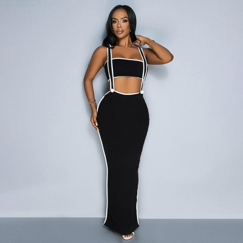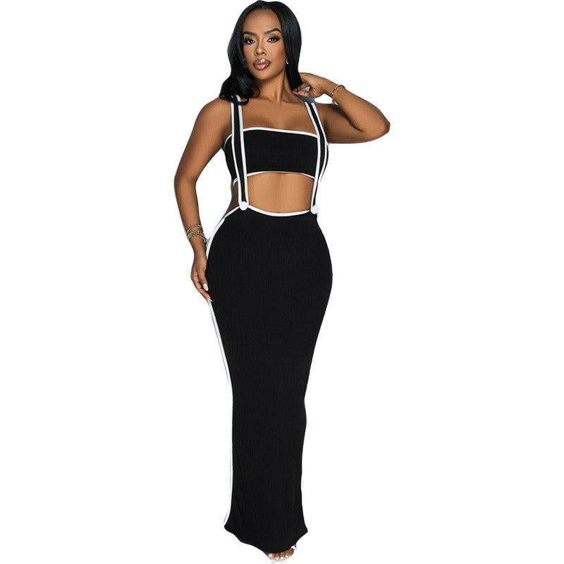 Fashionable and sexy strapless strapless hollow out belly slimming long dress