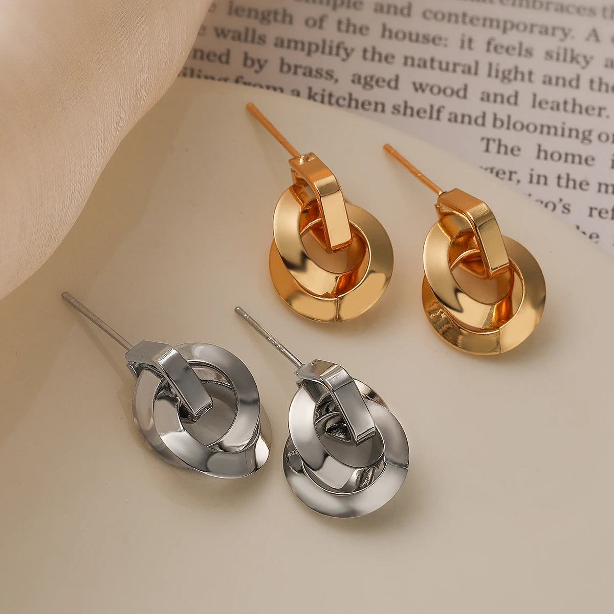 Fashionable and simple plain geometric circle earrings for women INS, niche high-end earrings, new