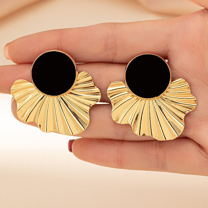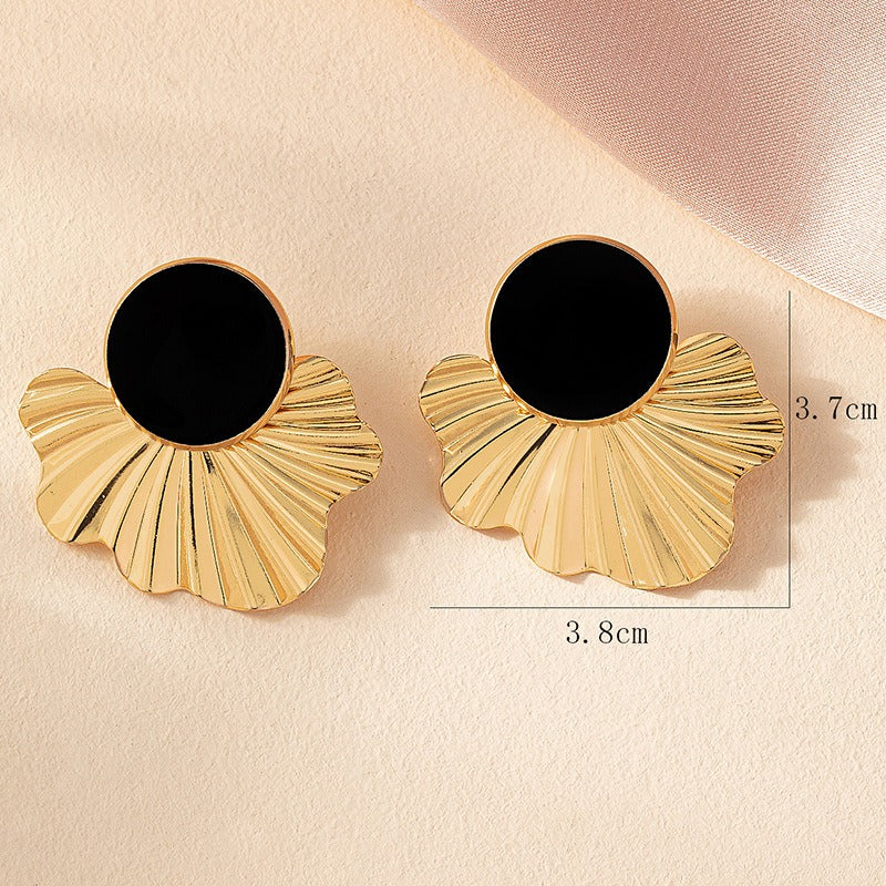 Geometric enamel glaze earrings for women Japanese and Korean ins style simple fashion round fan earrings