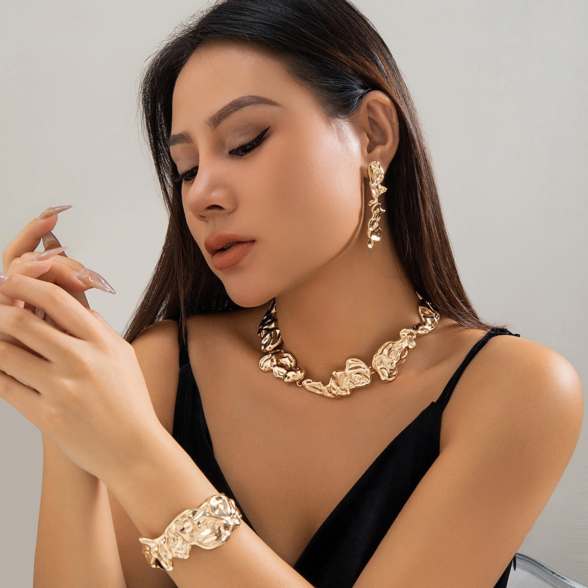 Liquid wrinkled irregular collar choker metal lava necklace for women