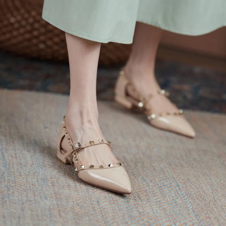 Liuding Baotou Women's Shoes Medium Heel Pointed Single Shoes Women's Summer Riveted High Heel Shoes Women's