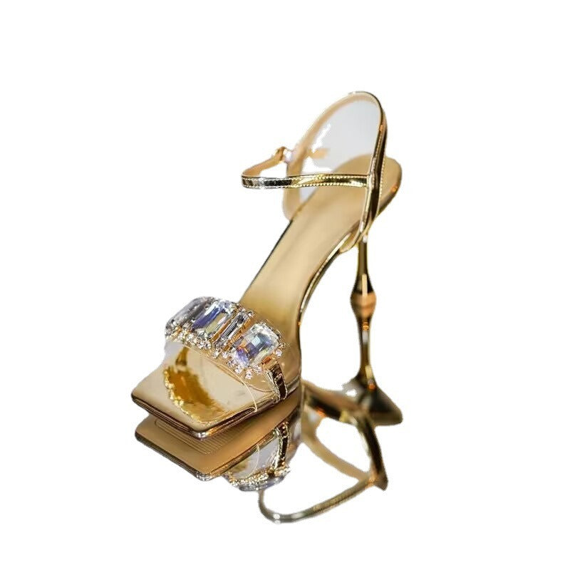 Open toe slim heel fairy style one line with sexy temperament women's shoes
