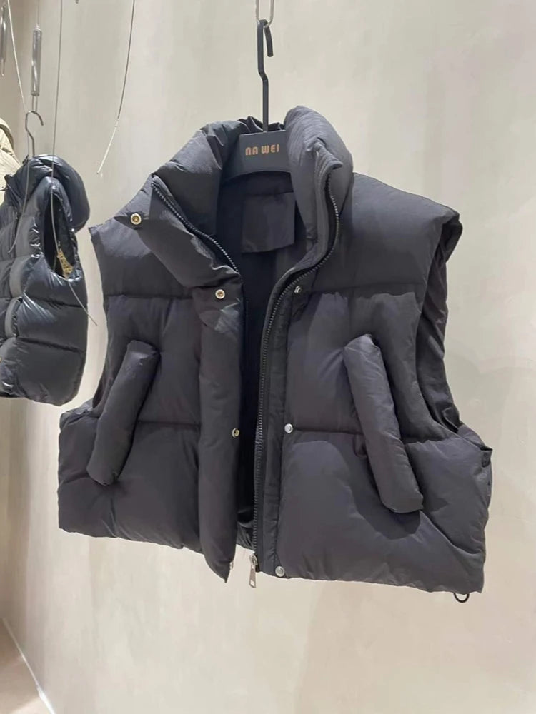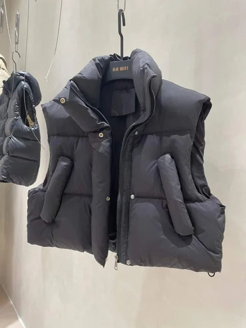 Outerwear Warm Vest Autumn Winter New Zipper Down Sleeveless Jacket Women Streetwear Stand Neck Fashion Top