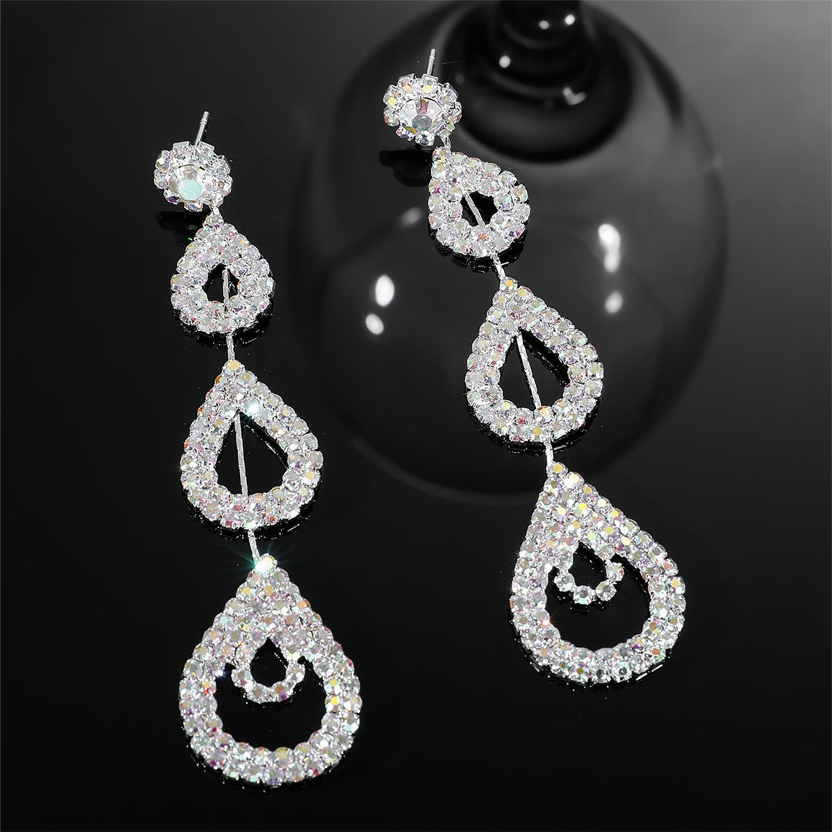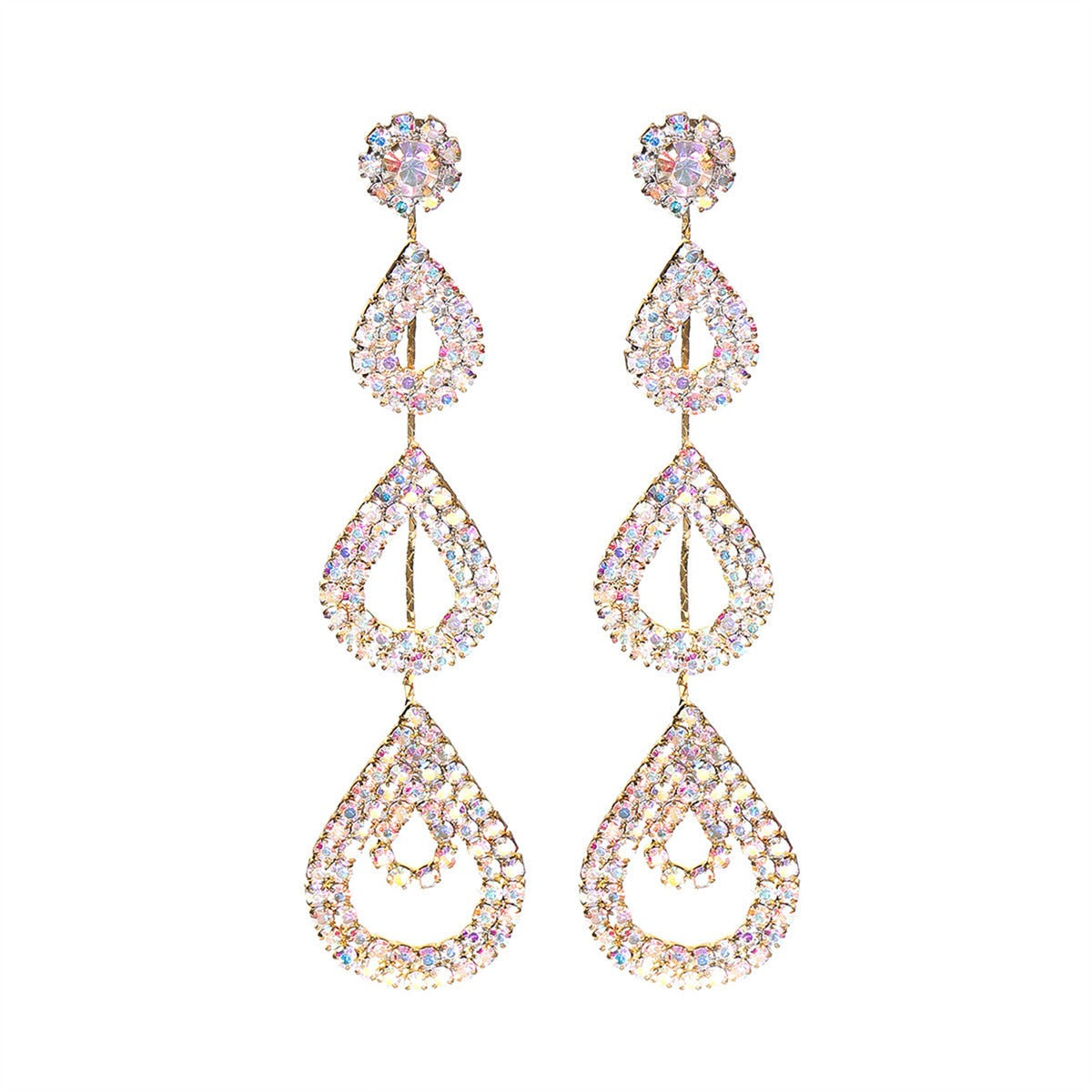 Personalized exaggerated super sparkling AB rhinestone long earrings women's drop ear jewelry