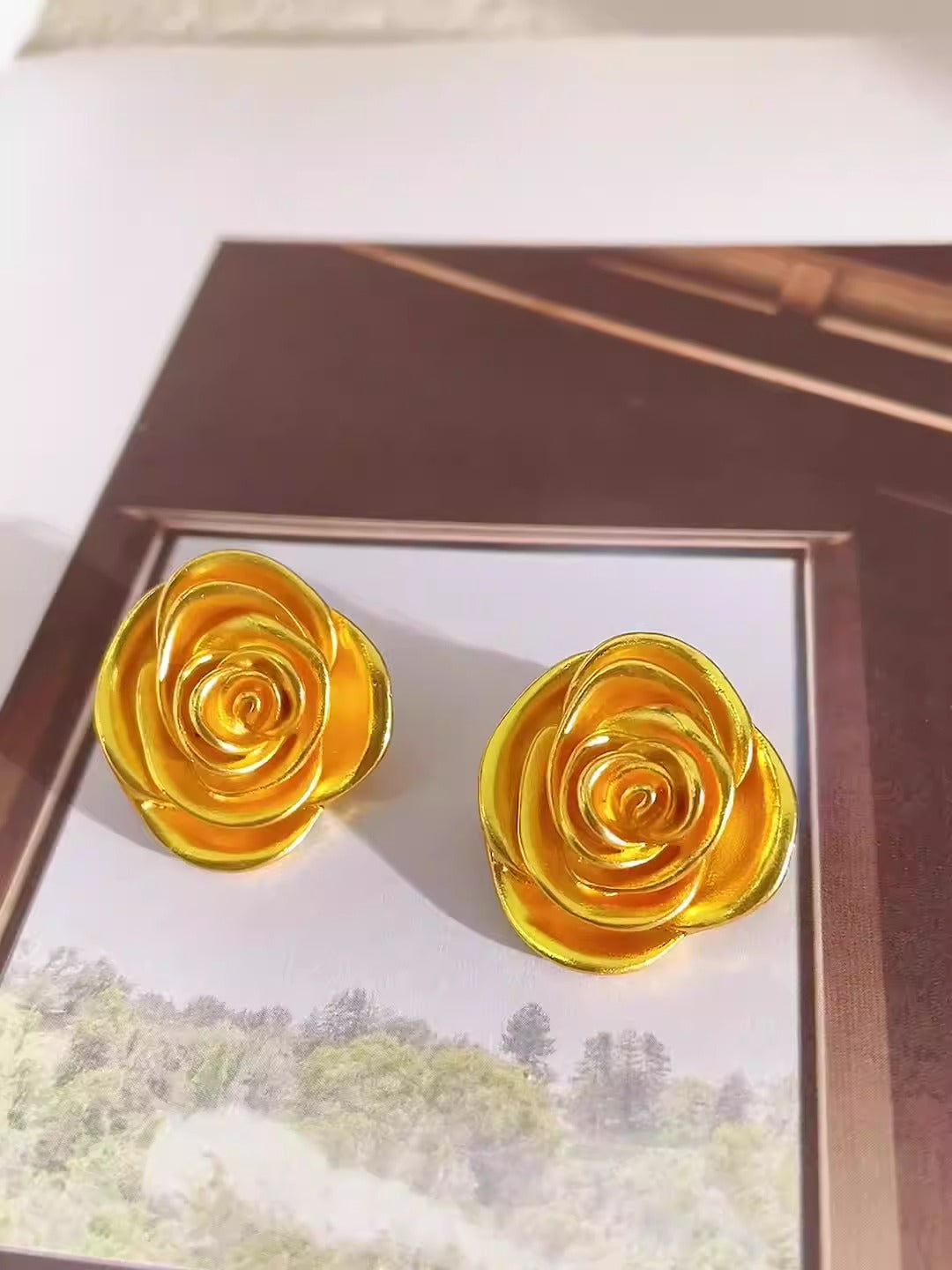 Retro Medal Gold Three-dimensional Rose Stud Earrings