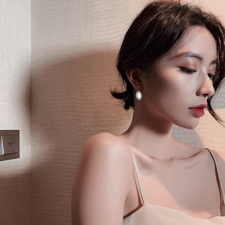 S925 Silver Needle White Moonlight Cat's Eye Retro High Grade Small Fresh Super Fairy Simplicity Earrings