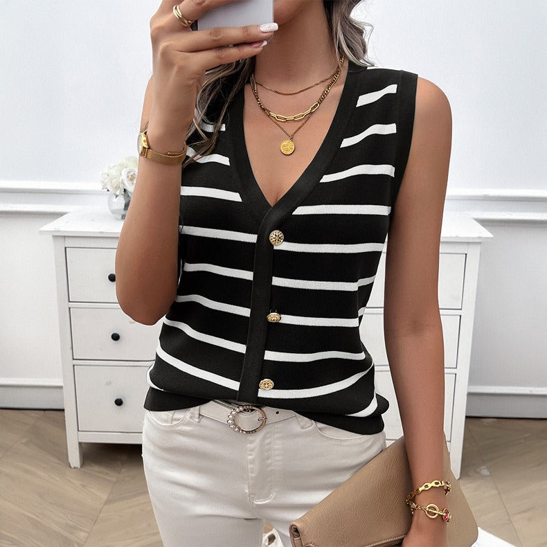 Spring and summer women's casual V-neck contrasting cardigan sweater for women