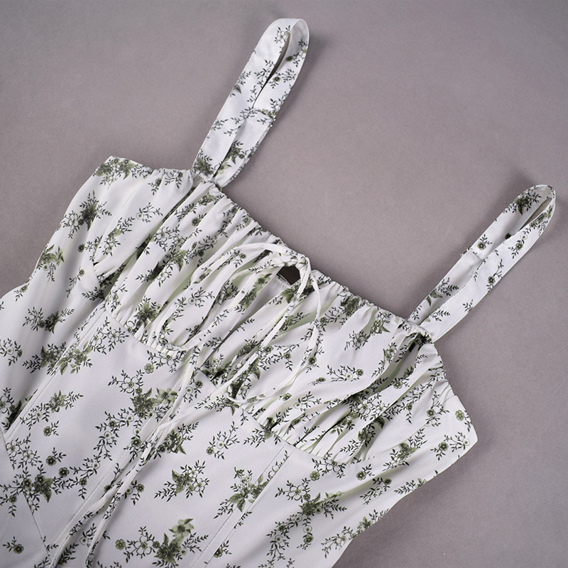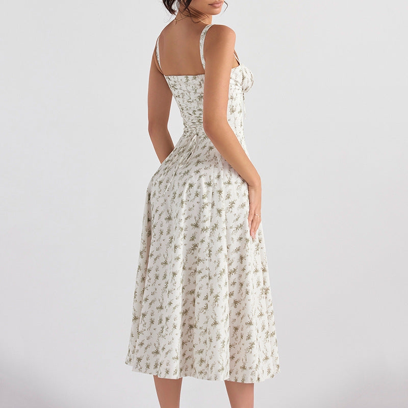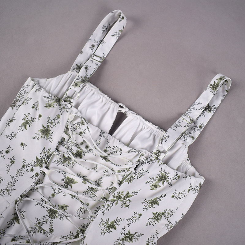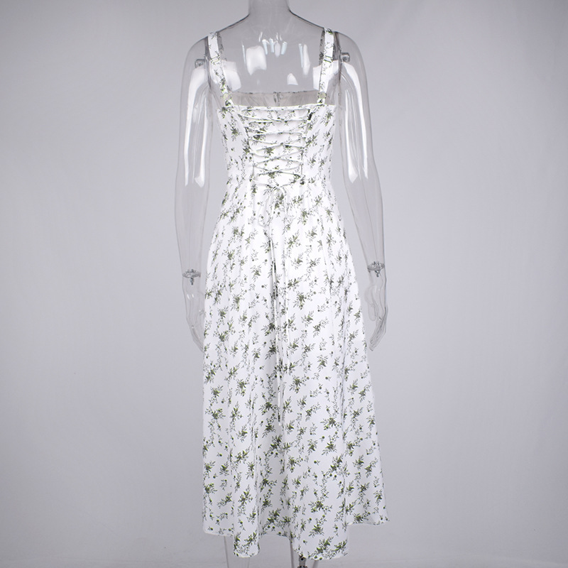 Summer Women's Floral Lace-Up Backless High Slit Suspender Dress Summer Dress