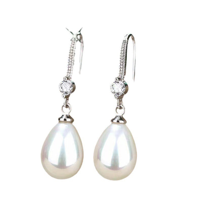 Water droplet shaped simulated freshwater pearl earrings for women, new zircon shell pearl group set with long earrings