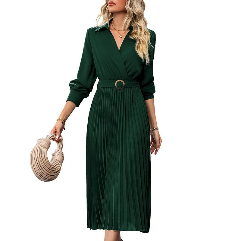 Wholesale popular spring and autumn European and American women's high-end solid color dresses